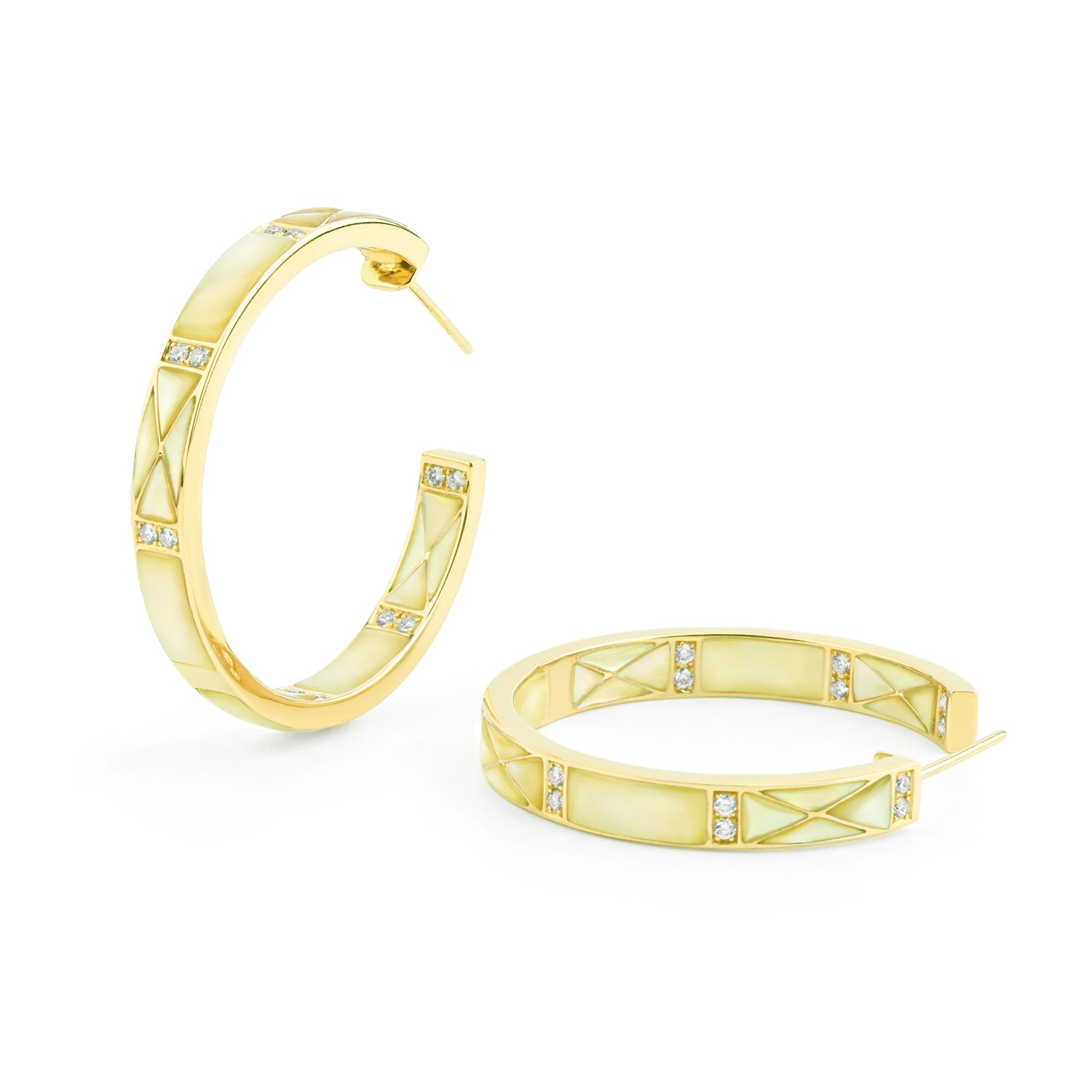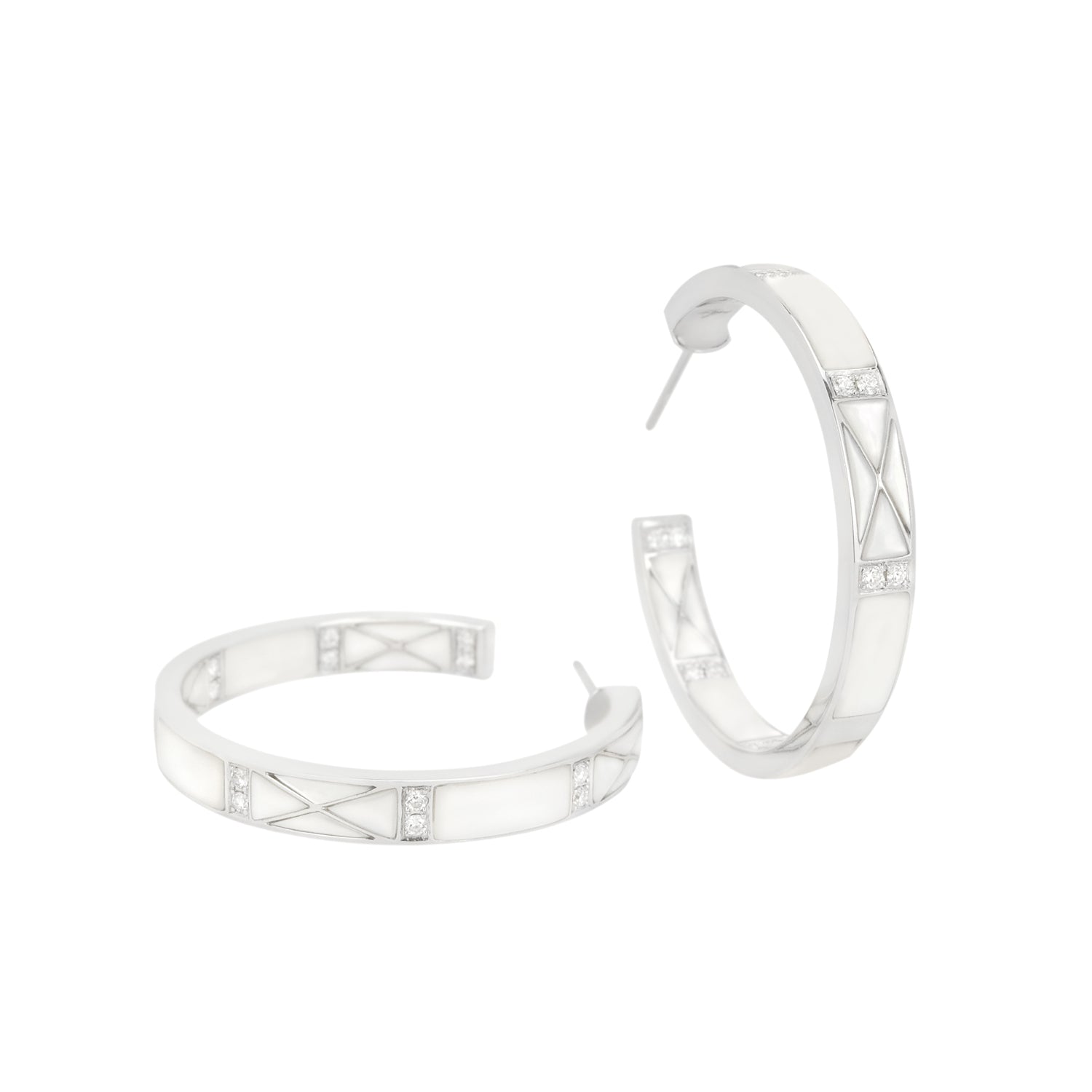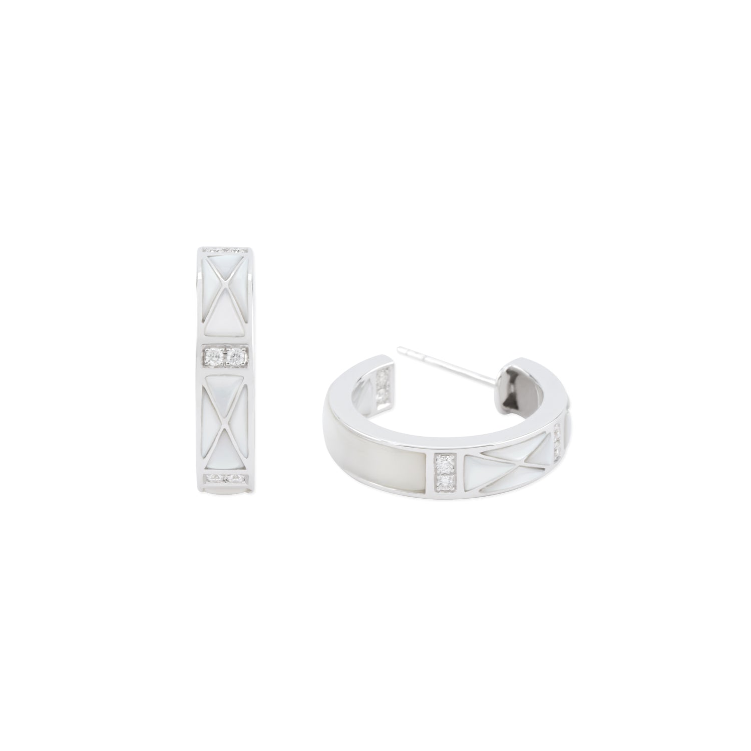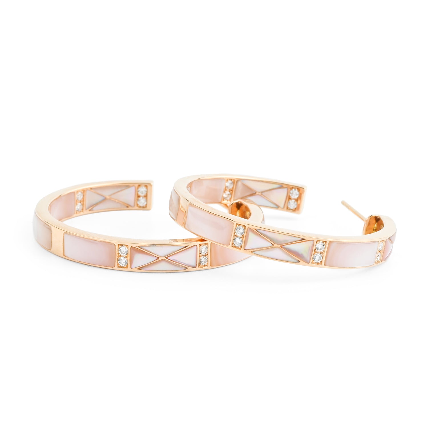 Versatile and brilliant, the earrings dazzles with over Matara petite diamonds pave-set in white/rose/yellow gold, with clean lines that magnify the brilliance of mother of pearl.